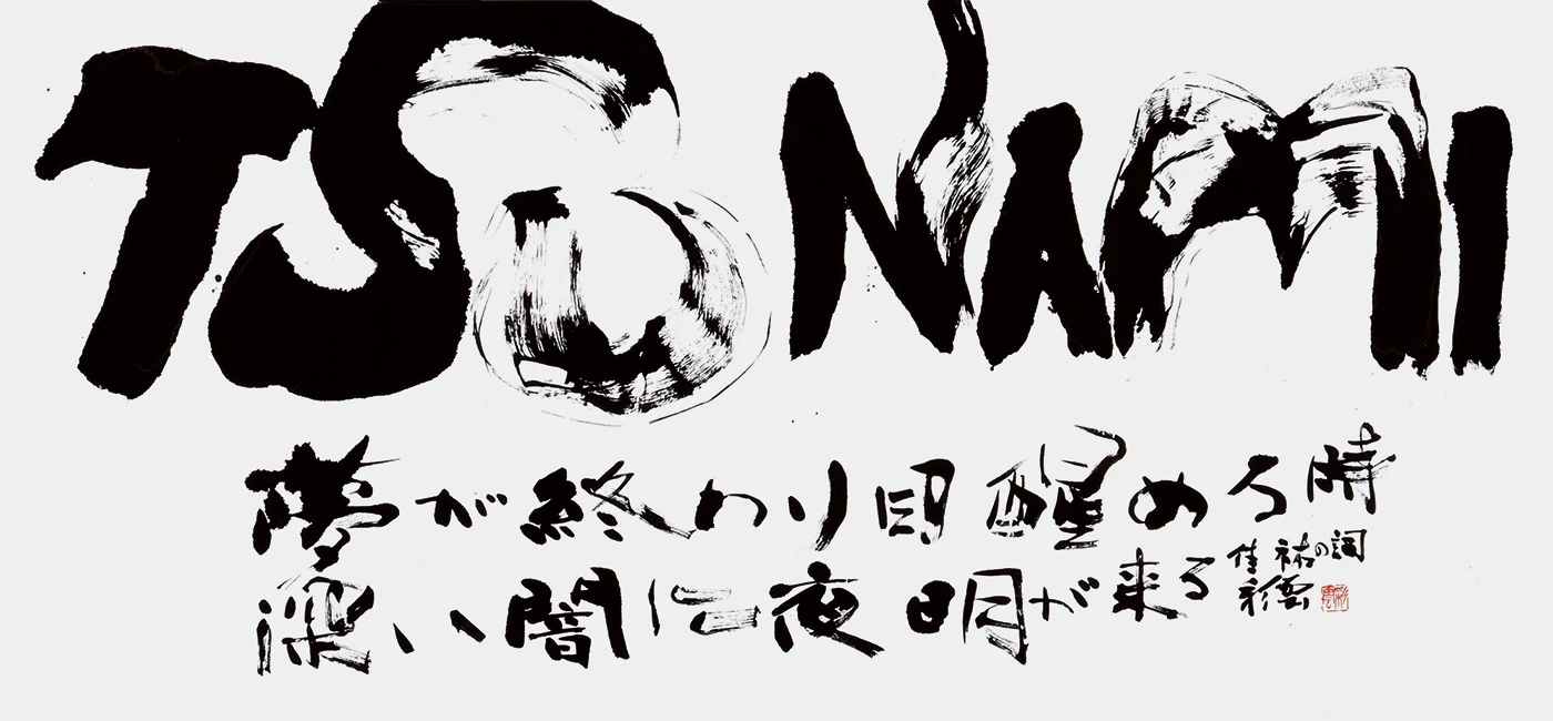 津波の怖さがずーと頭から離れずにいました。TSUNAMIの歌詞とメロディーを聞いた時何ぜか重なり書いてみようと思ったのが切っ掛けです。横文字の書道も有りと思っています。