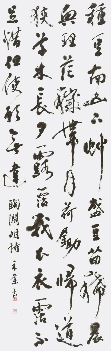 - 豆を南山の麓に植えたけれど、草ばかりが茂って豆の苗はほんの少しだ。朝早くから出て行って雑草を片づけ、月の光を受けながら、鋤を背にして帰ってくる。道は狭くて、草や木は伸び放題に丈が長い。夜露は私の着物を濡らす。着物が濡れるのは惜しくはないけれど、私の願いだけは違ってしまうことがないようにさせたいものだ。これがこの詩の大意です。農家生まれの私には、母の姿が重なり、その情景が、この作品から感じられる様表現。