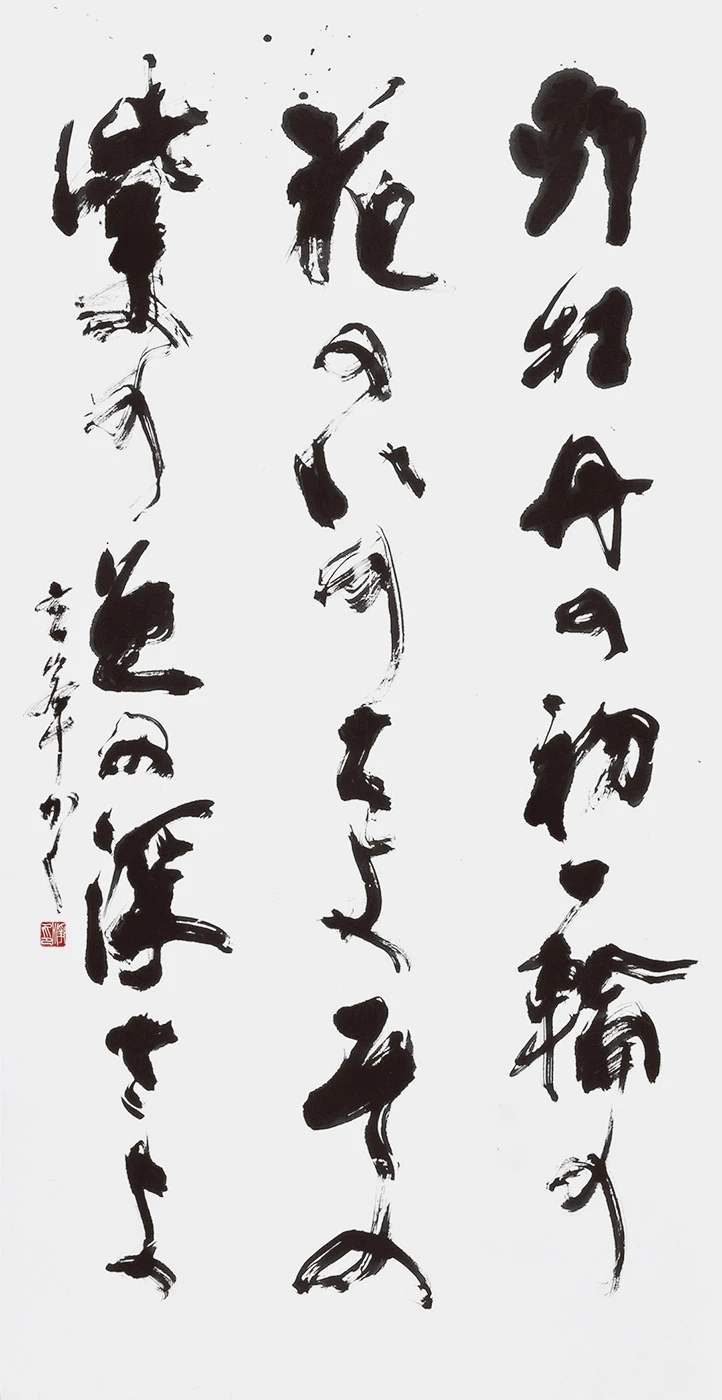 野牡丹の花が活き活きと咲いている。その深い紫が色彩やかに目にしみる。その生命感を感じながら、たっぷりと墨を筆にしみこませ一気に書きあげました。