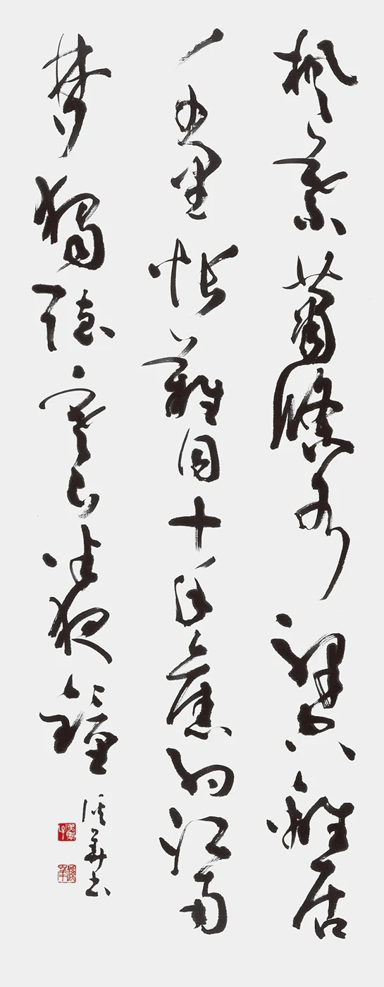 秋の季節、情景はもの寂しい詩だが、嘗て真暗な中訪れた寒山寺や蘇州の美しい風景を心に置き、布置、線の変化に留意しながら表現した。