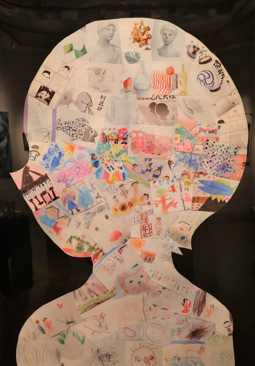 自分自身の14年間を表現しました。私は葛飾区で生まれて、14年間、葛飾区で過ごしてきました。この作品の自分のシルエットの中は、自分自身を表現したかったので、小さいころに描いた絵から最近描いた絵までを、写真に撮って並べました。自分自身で、思い出のあるものを選んで貼っています。