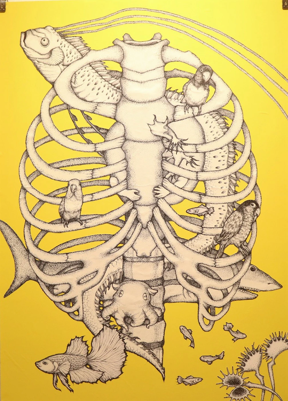 「Deeper」は2020年から制作を始め、徐々に変化していく自分の内面を点描とコラージュで表現しました。今まで出会ったもの、好きなものや憧れるものなどを想像するだけでなく描写することで、今自分は何を考えているのかが目に見えてわかるので面白い作品になったと思います。