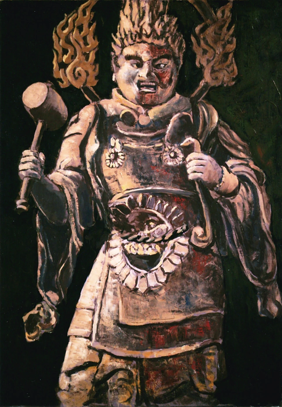 サンスクリット語の(プールナ・バドラ)に相当するもので「千手陀羅尼経」に出る「満善」という守護尊の一種であろう。金大王とともに毘沙門天八大薬叉将に数えられる。左手に蛇をもち、カキ殻のように逆立つ頭髪などから龍衆の1種とみられる。仏教的世界観によれば、その中心に位置するという須弥山と、その地底から上空までを層状に区分して、衆生の心境の浅深・上下によって欲・色・無色の三界六道とし、修羅・人間(人間を含む前五道は俗界)・天井(28種あり、三界にわたるという)などにすむ各界の種族が想定されている。