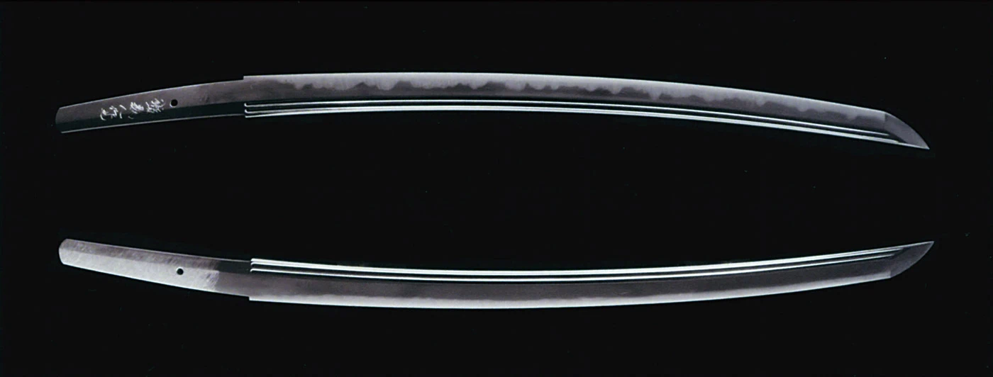 この脇差の見所は、表が乱れ、裏が直刀と云う変わった作品と云う所です。