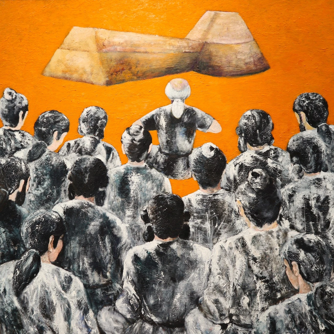 以前描いた構図を修正、簡素化し、色彩も少なくして力強さを表現した。
