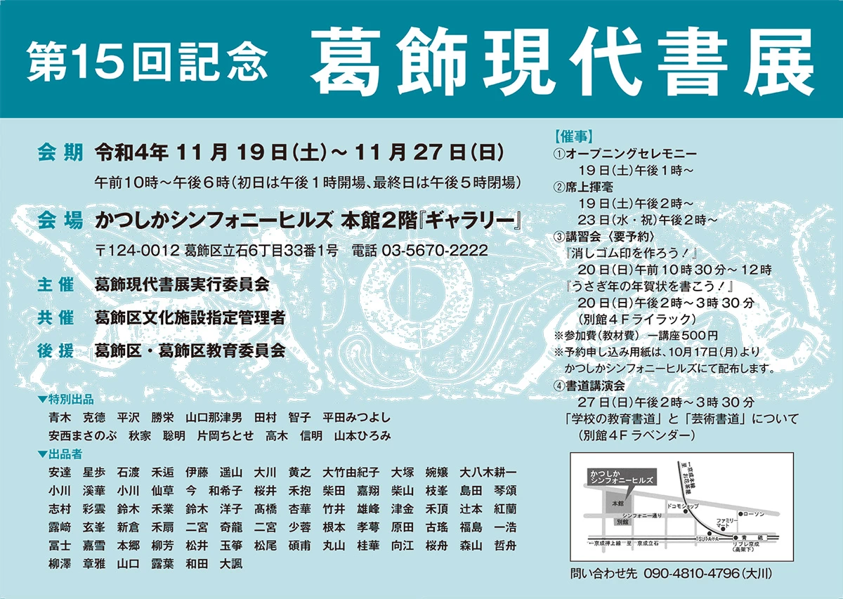 15回目の記念開催は、期間を延長して区内著名書家の優れた作品を一堂に展示!